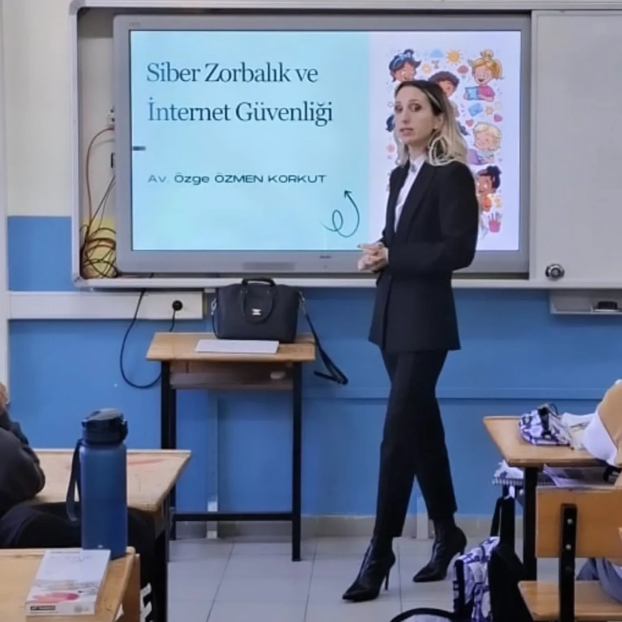 İzmir Sahilevleri Rotary Kulübü Dönem Sekreteri Avukat Özge Özmen Korkut, daha önce Atatürk Köşesi’ni yeniledikleri Mustafa Saadet Alanyalıoğlu Ortaokulu’nda “Siber Zorbalık ve İnternet Güvenliği” başlıklı bir sunum gerçekleştirdi.